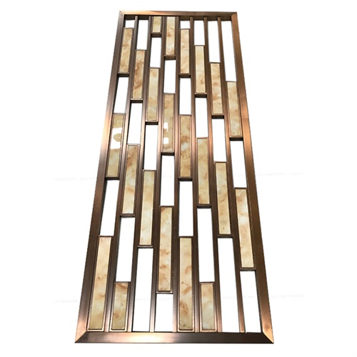 會(huì)所新中式玫瑰金鏤空花格屏風(fēng)造型中式花格造型居多,它主要由不銹鋼空心管經(jīng)氬弧焊接,打磨,拉絲,拋光和電鍍制成。線(xiàn)條簡(jiǎn)單,但表達(dá)了深遠(yuǎn)的意境,簡(jiǎn)單的格子被用來(lái)傳達(dá)優(yōu)雅的魅力。沉淀數(shù)千年歷史的東方生活美學(xué)在當(dāng)今時(shí)代并沒(méi)有逐漸消失。然而,憑借其簡(jiǎn)單而輕巧的設(shè)計(jì)而又不失去其內(nèi)涵,它在歷史的腳步中站穩(wěn)了腳跟。到目前為止,新型的中國(guó)不銹鋼格子屏風(fēng)仍然散發(fā)出永不落伍的魅力。新型中式不銹鋼屏風(fēng)是用不銹鋼原料制成的。薄鍍層工藝不會(huì)掩蓋原始的不銹鋼金屬感,隱隱約約的金屬光澤以及現(xiàn)代有機(jī)板,它是現(xiàn)代科學(xué)技術(shù)進(jìn)步和新型建筑材料的重要體現(xiàn)。