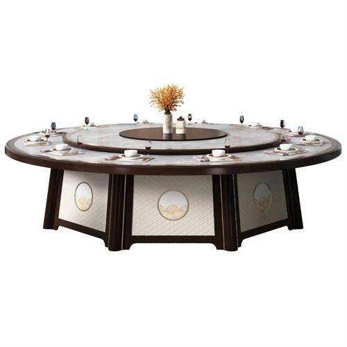 酒店會(huì)所宴會(huì)餐廳新中式高檔實(shí)木巖板20位電動(dòng)餐桌圖