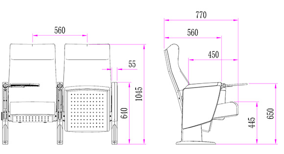 2.座椅基本中心距為560±5mm,座包打開側深760±5mm,基本椅高為1025±5mm,最小排距:950mm。