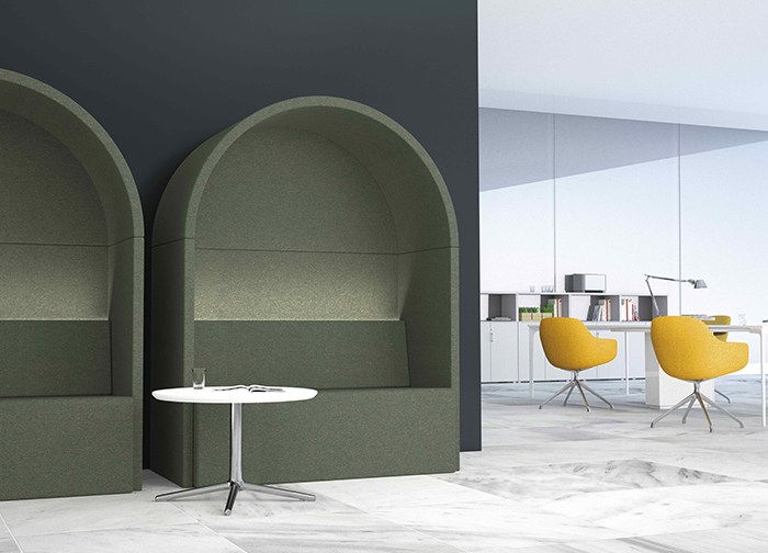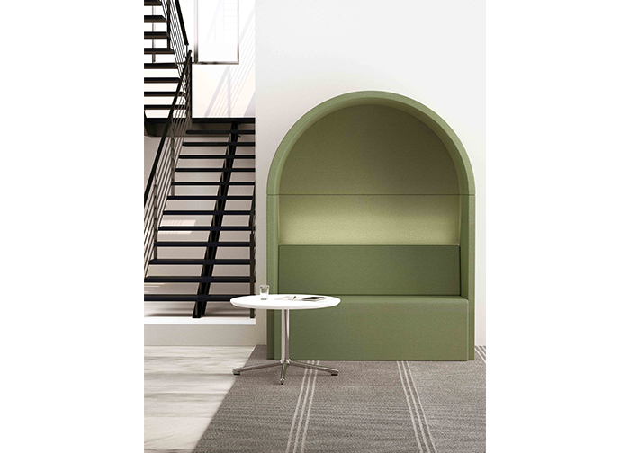ROMA沙發(fā)的造型靈感來(lái)自于羅馬建筑元素—拱門(mén)與羅馬柱,設(shè)計(jì)師將這 兩個(gè)元素融入到現(xiàn)代辦公行為學(xué)當(dāng)中,為用戶營(yíng)造出一個(gè)具備私密性與實(shí) 用功能相結(jié)合的休閑座具,同時(shí)構(gòu)建出一個(gè)挺立于辦公休閑區(qū)的小建筑。